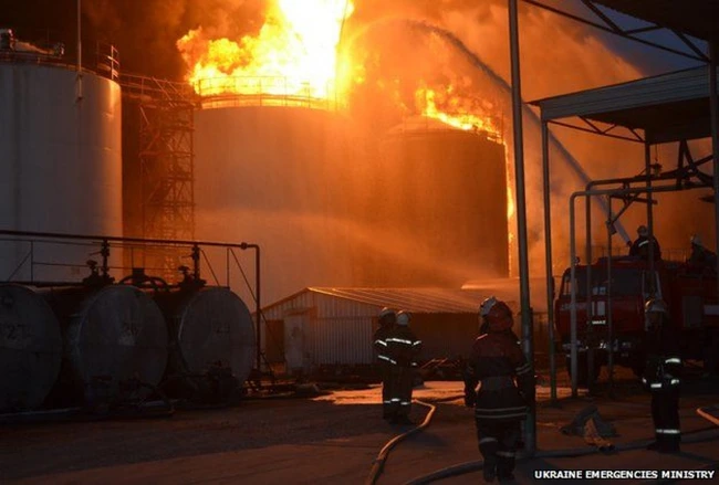 Potrivit Interfax Ucraina, Ministerul pentru Situaţii de Urgenţă a anunţat marţi că alte opt rezervoare, cu o capacitate de 50 de metri cubi au luat foc. Incendiul a fost stins la unul dintre cele opt rezervoare cu capacitatea de 900 de metri cubi, potrivit aceleiaşi surse.