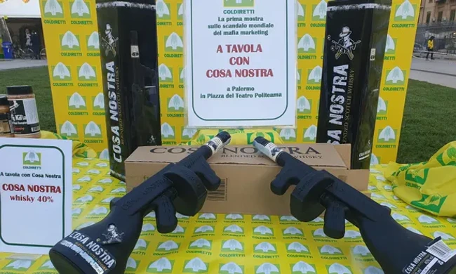 Coldiretti a organizat o expoziție în decembrie în orașul Palermo din Sicilia, unde și-a avut originea organizația mafiotă Cosa Nostra, cu unele dintre produsele alimentare și băuturile adunate din întreaga lume, inclusiv Chilli Mafia, un sos fabricat în Marea Britanie, Mafia Coffee și vinul Il Padrino.