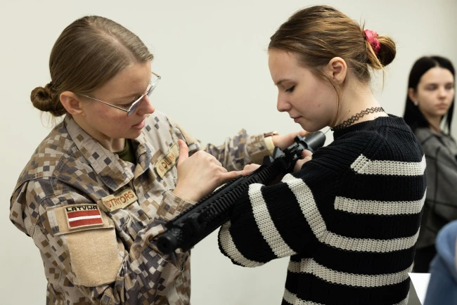 În multe țări europene, prezența puștilor în clasă ar fi un scandal. În Letonia nu există o asemenea opoziție, iar instruirea cu arme a devenit parte din program, chiar și pentru viitoarele stiliste sau profesoare de dans.