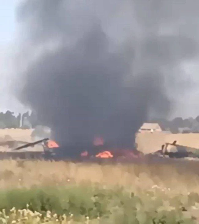 O fotografie cu epava în flăcări într-un câmp a fost distribuită miercuri de bloggerii militari ruși, care au susținut că în imagine este un elicopter de luptă MI-8.