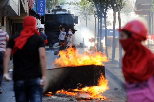 Poliţia a făcut uz de gaze lacrimogene, tunuri cu apă şi a tras cu bile de plastic pentru a-i împiedica pe manifestanţi să se apropie de sediul local al Partidul Justiţiei şi Dezvoltării (AKP). Incidentele au durat mai multe ore.