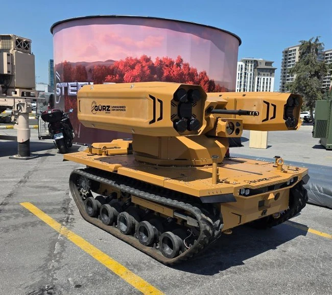 0Un nou sistem de apărare aeriană autonom, montat pe o platformă terestră cu șenile, a fost prezentat de compania turcă Aselsan în cadrul expoziției IDEF 2025, desfășurată la Istanbul.