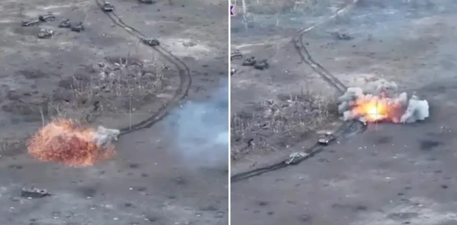 Videoclipul, filmat cu o dronă, arată cum primul dintre cele patru vehicule armate este lovit de o explozie. Apoi, se trece la o altă lovitură asupra vehiculului din spate, ceea ce le izolează practic pe cele două din mijloc.