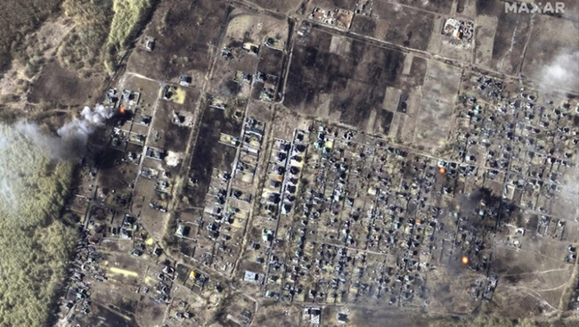 Sate arse şi câmpuri pârjolite în apropierea Kievului, asta se poate vedea din satelit.