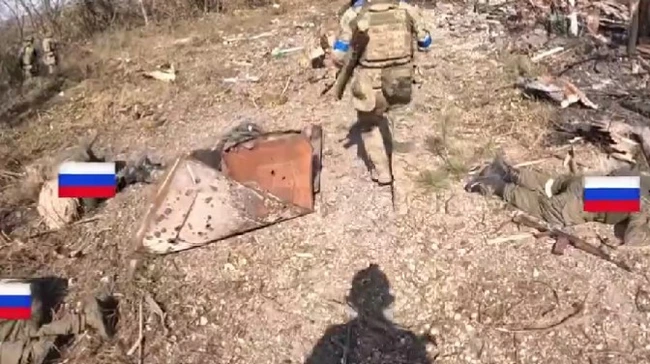Încă din primele cadre ale filmulețului pot fi observate cadavrele unor soldați ruși uciși în timpul confruntării.