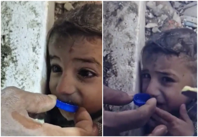 Copilul a fost filmat când primea apă în capacul de la o sticlă, întrucât salvatorii nu puteau ajunge complet la el. Scena a fost filmată de primarul din Istanbul, Ekrem İmamoğlu, într-un mesaj în care anunță că salvatorii au reușit să-l scoată de sub dărâmături și imaginile au ajuns pe Twitter.