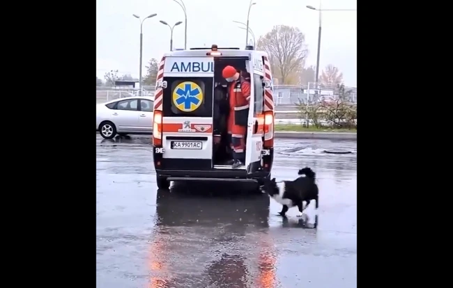 Imagini virale cu un câine devotat care încearcă să urce în ambulanță alături de stăpânul său. Ce au făcut paramedicii VIDEO