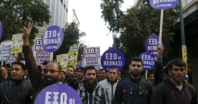„Cer încetarea rasismului. Trebuie să realizaţi că şi noi suntem fiinţe umane şi vrem dreptate“, îşi strigă nemulţumirea Javed Aslam, preşedintele pakistanez al Uniunii Muncitorilor Imigranţi din Grecia. El s-a adresat unei mulţimi de aproximativ 5.000 de oameni, care a defilat în drum spre Piaţa Syntagma, din faţa clădirii Parlamentului, în semn de protest faţă de fascism şi de numărul tot mai mare de atacuri rasiste îndreptate împotriva imigranţilor.