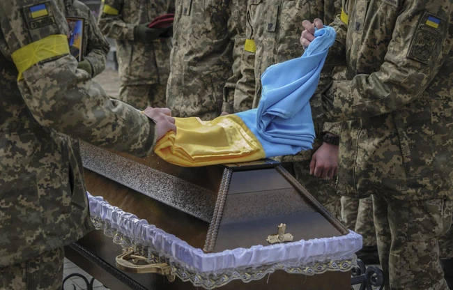 Înmormântarea unui soldat ucrainean de 21 de ani, căzut în a treia zi de război: nimeni din familie n-a fost de faţă când s-au auzit salvele trase în amintirea lui