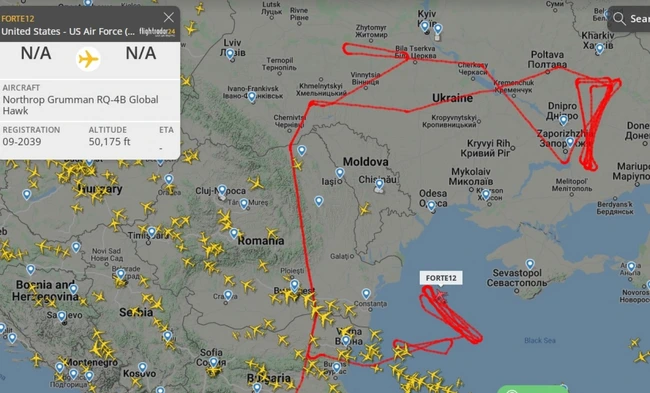 O dronă americană de tip Northrop Grumman RQ-4B Global Hawk monitorizează în timp real sub indicativul FORTE 12 zona litorală a Mării Negre după ce Aliaţii se aşteaptă la o debarcare la est de Odesa, între oraşele Fontanka şi Kobleve. Apoi, forţele terestre ruse au intrat în Ucraina dinspre peninsula Crimeea, anexată de Rusia în 2014. Trupele ruse vor „înainta spre nord-est de oraş, apoi vor face stânga şi vor avansa până în Transnistria, iar Odesa ar fi înconjurată”, susţin unele surse militare.