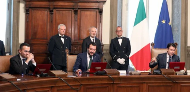 ”Acest Guvern îşi respectă promisiunile”, şi-a exprimat satistacţia şeful Guvernului Giuseppe Conte, într-o conferinţă de presă comună cu cei doi vicepremieri ai săi, Matteo Salvini, liderul Ligii (extremă dreapta) şi Luigi Di Maio, liderul Mişcării Cinci Stele (M5S, populişti, antisistem).