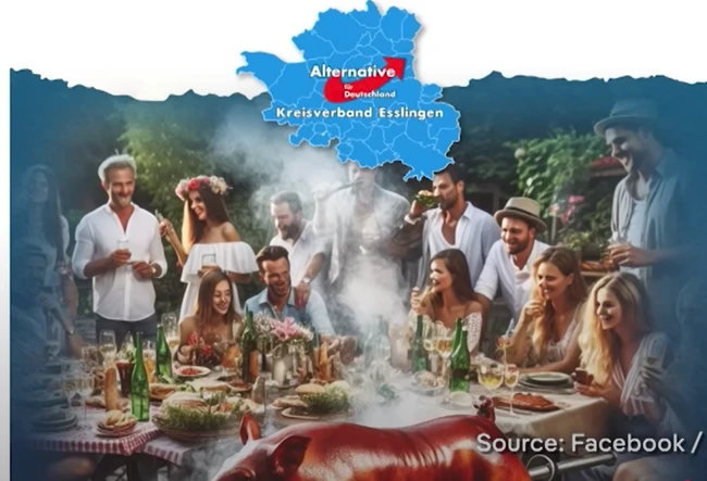 Utilizatorii pro-AfD postează totul, de la fete blonde în ținute albastre AfD care călăresc câini într-o mare de steaguri germane până la videoclipuri deepfake cu politicieni din partidele mainstream care se sărută sau merg la închisoare.