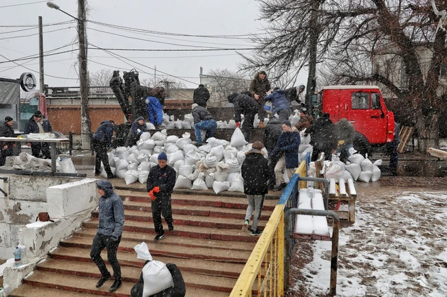 Centrul oraşului este pustiu. Baricadat însă cu saci de nisip, oraşul de pe coasta sudică a Ucrainei este gata să riposteze. Bombardamentele nu au început, dar sunt aşteptate cu nervozitate. Locuitorii sunt avertizaţi de zile bune că ar putea urma o debarcare amfibie a trupelor ruse. O parte din civili s-au înarmat deja.