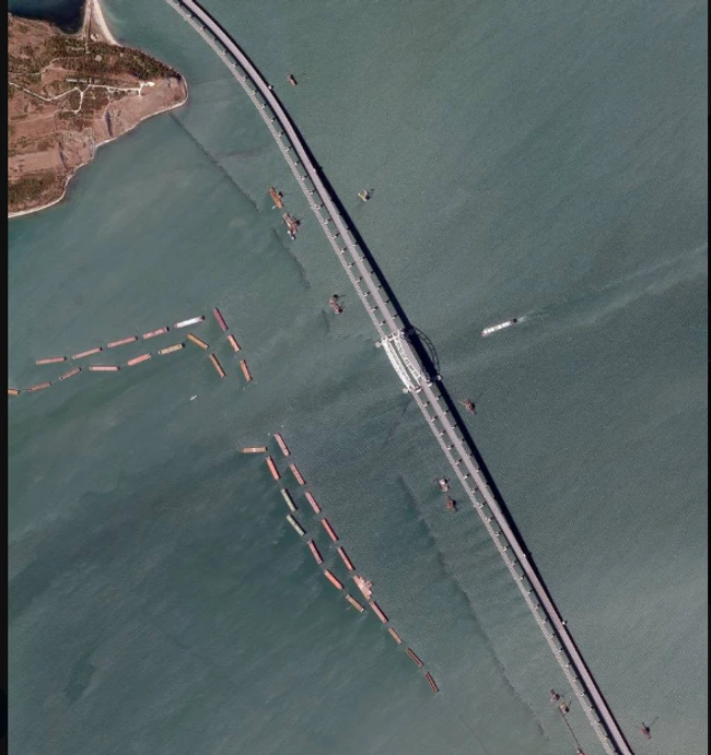 La rândul său, șeful spionajului ucrainean, Kirilo Budanov, a dat de înțeles anterior că ar fi posibil ca armata ucraineană să lanseze chiar în acest an un atac devastator asupra podului Crimeei, la care ține Rusia ține foarte mult și care îi asigură conexiunea cu teritoriile ocupate din Ucraina.