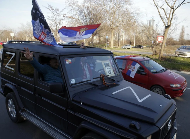 0În jur de 100 de maşini cu litera Z imprimată, precum cea de pe tancurile ruseşti din războiul din Ucraina, au circulat duminică prin centrul capitalei Serbiei, Belgrad, în semn de susţinere a invaziei Moscovei.