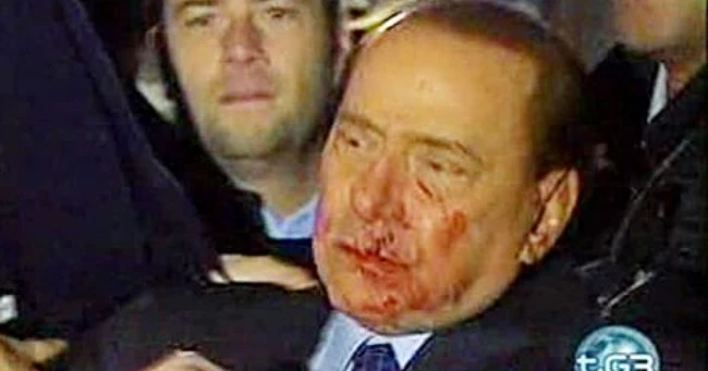 Premierul a fost lovit de un pumn în timp ce îşi saluta susţinătorii înainte să părăsescă piaţa. Massimo Tartaglia a reuşit să treacă neobservat de oamenii de pază şi l-a lovit pe premier cu pumnul. Agresorul a fost imediat blocat şi luat de poliţie.