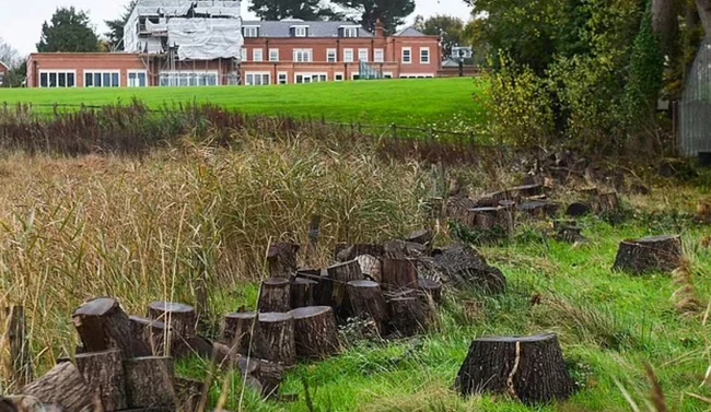 Omul de afaceri, în vârstă de 37 de ani, deține un conac care valorează mai mult de 5 milioane de lire sterline. Acesta susține că a cerut permisiunea vecinului său de a curăța unele ramuri neîngrijite și i s-a spus că le poate tăia cât de mult vrea. După ce muncitorii lui au terminat, copacii au fost reduși la cioturi, astfel că va dura aproximativ un secol pentru refacerea acestora.