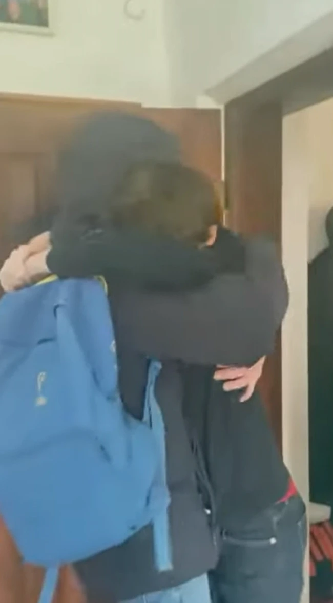 După ce a sunat la uşă, cea care pare a fi soţia lui, a fost vizibil surpinsă şi emoţionată la revederea acestuia. Iar fiica lui, Maşa, a plâns de bucurie, spunându-i că şi-a făcut griji pentru el.