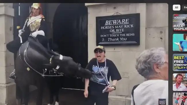 Incidentul nu este singular. Anul trecut, o turistă a fost șocată când calul regal a tras-o de coadă și a dezechilibrat-o. În aprilie 2023, alt turist a fost lovit cu capul în braț de calul soldatului în timp ce încerca să facă o fotografie.