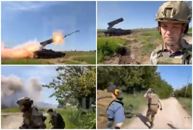 Momentul în care ruşi ce filmau un atac cu rachete termobarice fug de artileria soldaţilor ucraineni VIDEO