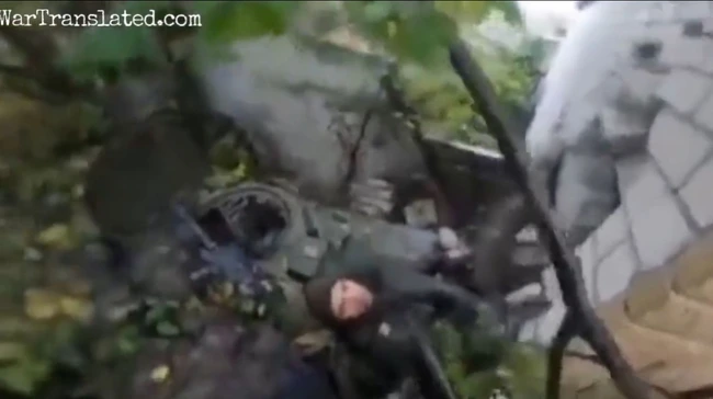 Un soldat rus a rămas blocat cu un picior strivit între vehicul și un zid de care s-a izbit, în timp ce ceilalți au murit în urma atacului sau au fugit. Soldatul ucrainean care a filmat scena cu camera montată pe cască le cere camarazilor săi să-l acopere și merge să vadă ce s-a întâmplat cu soldatul rus, care nu poate să se miște.