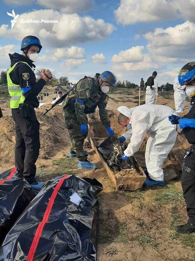 Agenţia ucraineană de presă Ukrinform, citând un înalt oficial al poliţiei ucrainene, a relatat că în groapa comună au fost descoperite 180 de cadavre.
