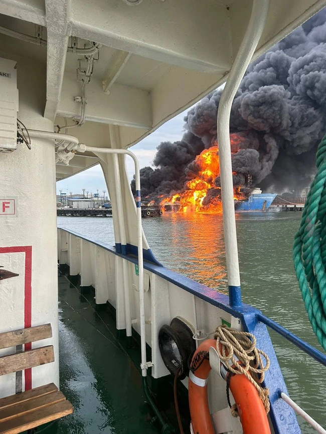 Un tren de pompieri a fost trimis în port pentru a face față incendiului, potrivit RIA Novosti. Serviciile de urgență au declarat inițial agenției că, în momentul atacului, pe feribot se aflau cinci persoane, iar soarta acestora nu era cunoscută în prezent.