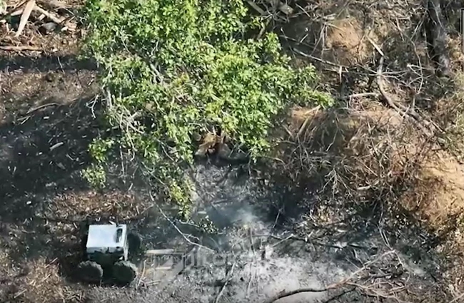 Acestea au lovit intrarea unui adăpost subteran rusesc. În timp ce un al doilea robot terestru se apropia pentru un a lansat un atac, doi soldați ruși supraviețuitori au fluturat o pancartă pe care scria „Vrem să ne predăm” în rusă.