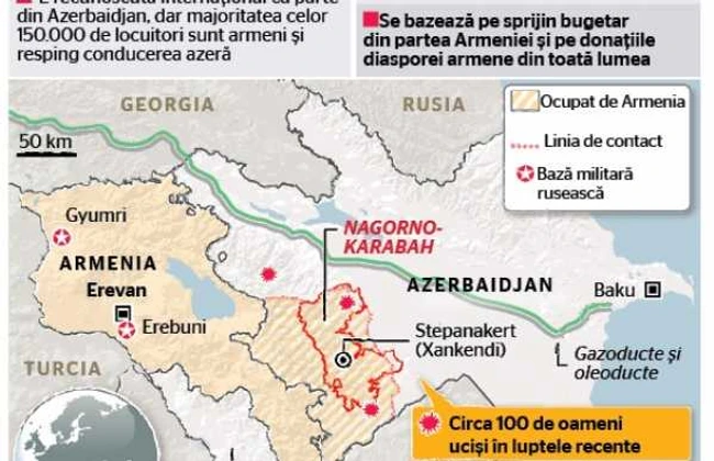 Caucazul de Sud este iarăşi în prag de război. Conflictul din Nagorno Karabah, ce durează de peste 30 de ani a reizbucnit zilele acestea. Există zeci de morţi de ambele părţi, inclusiv civili, deoarece ambele părţi supun bombardamentelor localităţi civile, inclusiv partea azeră a bombardat capitala entităţii nerecunoscute a Karabahului, Stepanakert. Conflictul din Nagorno-Karabah a fost de la bun început cel mai sângeros în comparaţie cu alte conflicte similare din spaţiul post-sovietic. În perioada aşa-numită fierbinte a acestui conflict, adică 1989-1994, au murit în total în jur de 30.000 de oameni.