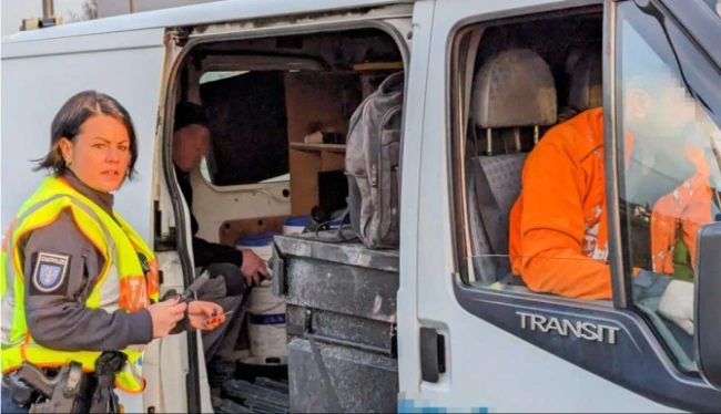 Polițiștii germani, uluiți la verificarea unui microbuz cu români. Șoferul, beat, iar un pasager, ascuns după un butoi cu varză murată