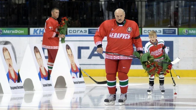 Preşedintele Belarus, Aleksandr Lukaşenko, a disputat în weekend un meci de hochei pe gheaţă la Minsk.