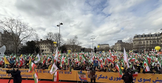 Persoane din întreaga Europă, aduse adesea cu autocarele pentru acest eveniment, au fluturat steaguri iraniene și au scandat lozinci împotriva guvernului, înconjurați de imagini ce îl ridiculizau pe liderul suprem al Iranului, Ali Khamenei.
