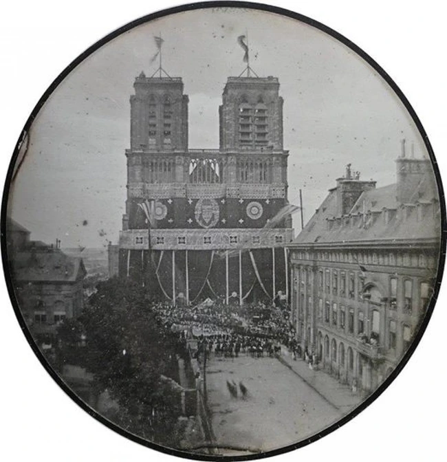 Pe internet a fost postată prima fotografie a Catedralei Notre-Dame, realizată în anul 1842. Atunci Catedrala a fost drapată în negru pentru că Franţa era în doliu. Murise prinţul moştenitor Ferdinand-Philippe D'Orléans, fiul cel mare a regelui Ludovic-Filip al Franţei şi a Prinţesei Maria Amalia de Bourbon-Sicilia.