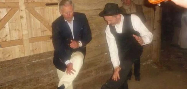 Prinţul Charles dansând, în timpul vacanţei petrecute în Ardeal