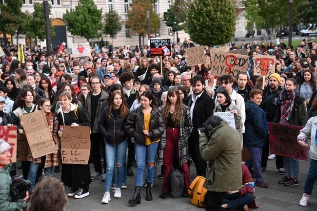 Aproximativ 3.000 de persoane, în majoritate femei, s-a adunat în faţa parlamentului pentru a apăra „dreptul fundamental de a decide dacă să aibă sau nu un copil", argumentează Monika Karvaly, o secretară în vârstă de 43 de ani. „Şi dacă împrejurările sunt diferite (violenţă, abuz...), nu ne trageţi la răspundere, nu ne pedepsiţi!”, a continuat protestatara.