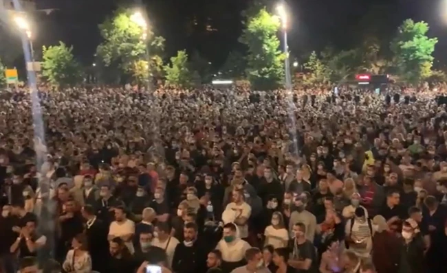 0Mii de oameni s-au adunat marţi seară în centrul Belgradului pentru a protesta faţă de intenţia preşedintelui Alexander Vucic de a institui stare de alertă la sfîrşitul săptămânii, din cauza numărului mare de cazuri de COVID-19. Mai mulţi protestatari au intrat în clădirea Parlamentului, dar au fost evacuaţi, prezenţa poliţiştilor în zonă fiind semnificativă, conform Balkan Insights.