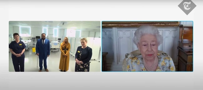 „În calitate de asistente, ne-am asigurat că nu sunt singuri. I-am ţinut de mână, e-am şters lacrimile şi le-am oferit confort. Uneori am simţit că alergăm la un maraton fără linie de sosire. Ma uit înapoi la ultimele 18 luni cu mare mândrie, mândră nu numai de îngrijirea pe care i-am oferit fiecărui pacient care se afla pe unul dintre paturile noastre de spital, ci mândră de fiecare membru al personalului care a plecat în fiecare zi de lângă familiile lor de acasă în ciuda temerilor şi grijilor şi au venit la muncă”, i-a spus o asistentă medicală Reginei.