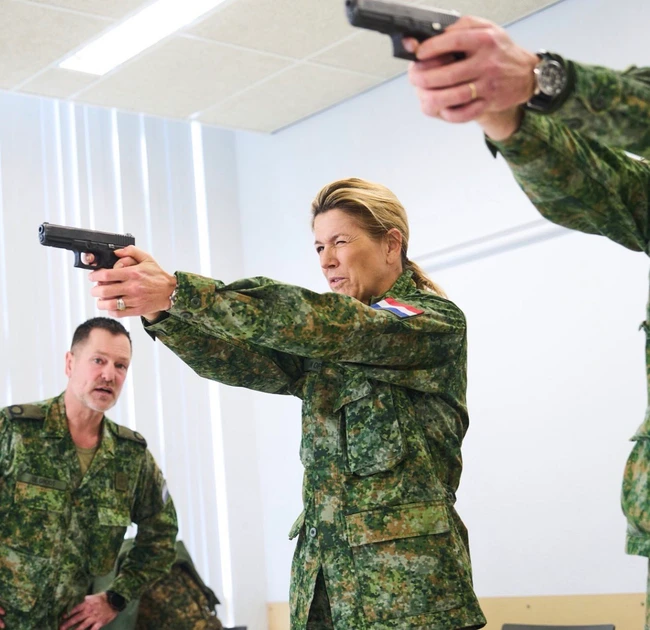 Regina Maxima, în uniformă militară și cu pistolul în mână: se pregătește să devină rezervist la 54 de ani