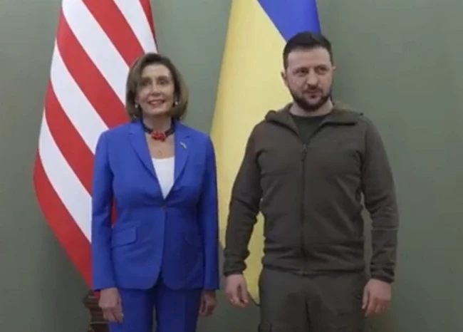 În scurta înregistrare video, Pelosi îi spune preşedintelui ucrainean: „Vă vizităm pentru a vă mulţumi pentru lupta voastră pentru libertate... Lupta voastră este o luptă pentru toată lumea. Aşa că angajamentul nostru este să fim aici pentru voi până când lupta se va încheia”.