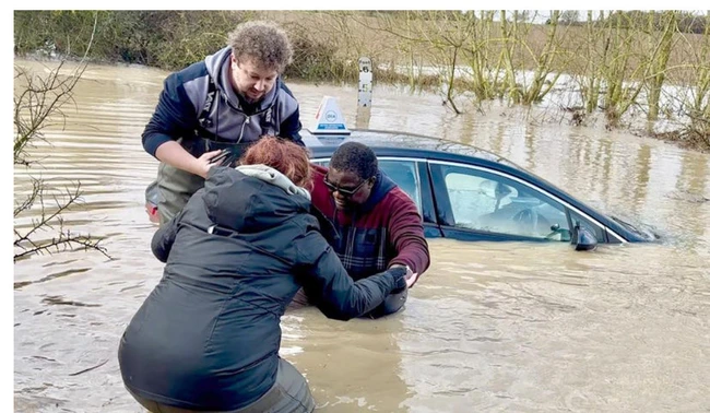 Șofer luat de apă cu tot cu mașină în Marea Britanie, salvat de un cuplu în timp ce echipele de urgență priveau: „Nu au voie să intre decât până la brâu”