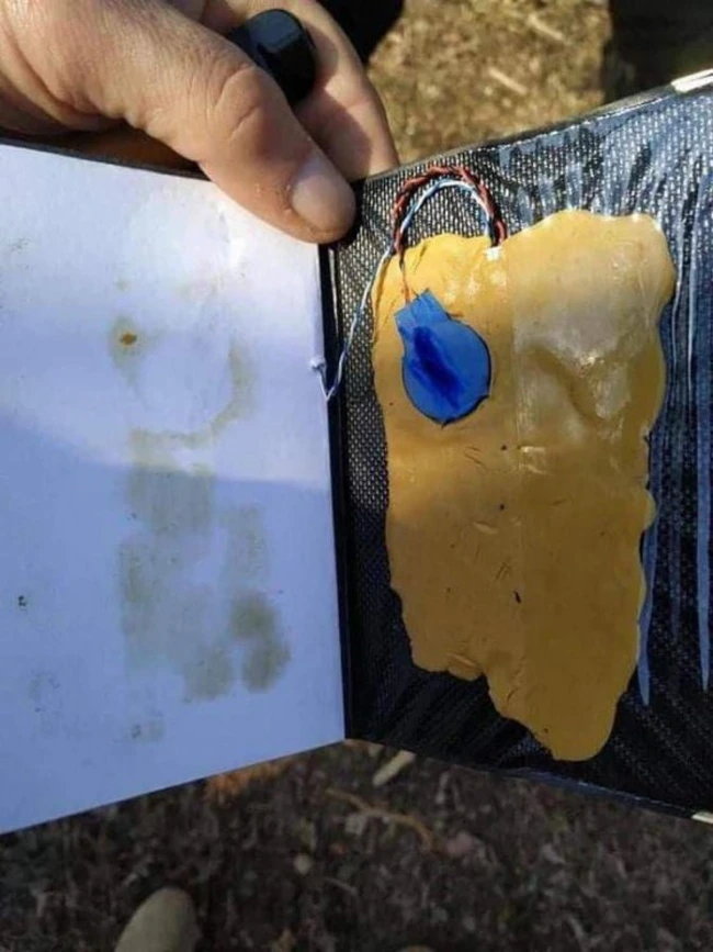În aceeaşi postare, Mäkelä dă share unui tweet al fotografului ucrainean Yana Morozova, în care apare o imagine cu o servietă care conţine o capcană.