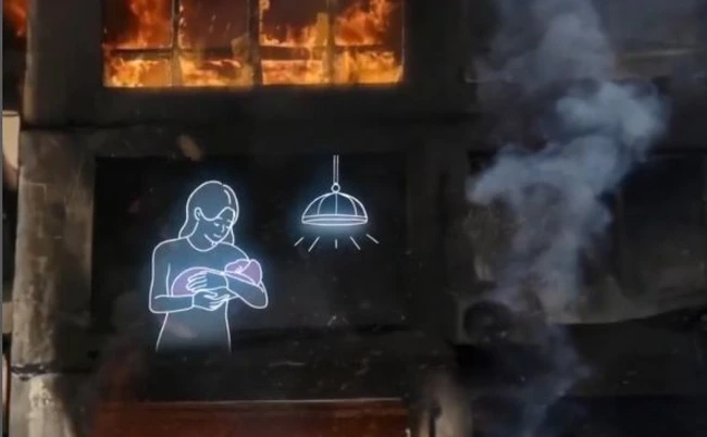 Într-un scurtmetraj numit „Suflete”, formele transparente ale civililor se suprapun cu imaginile ruinelor lăsate în urmă de armata rusă.