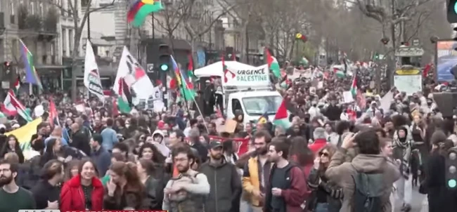 La Marsilia, în sudul Franţei, aproximativ 3.300 de persoane conform poliţiei (10.000 potrivit sindicatului CGT) au defilat purtând pancarte pe care se putea citi „împotriva islamofobiei de stat" şi „Tesla is the new swastika", fluturând drapele palestiniene.