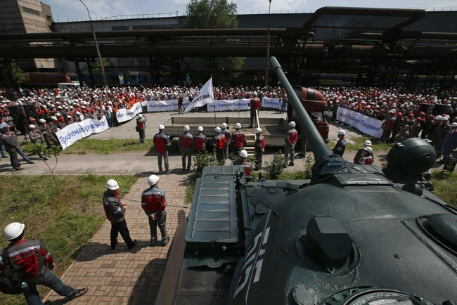 Rinat Ahmetov, cel mai bogat om al Ucrainei organizează proteste împotriva separatiştilor la care au fost chemaţi să participe cei 300.000 de muncitori din fabricile sale din estul Ucrainei să iasă la proteste împotriva separatiştilor. Analiştii de la Atlantic Council susţin că Ahmetov se teme de posibile sancţiuni occidentale devastatoare, impuse nu doar partenerilor săi ruşi, ci şi producătorilor de cărbune şi de oţel din regiunile Doneţsk şi Lugansk.