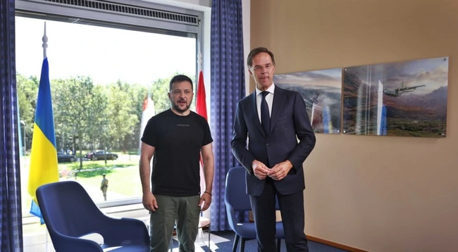 „Țările de Jos şi Danemarca să angajează să transfere F-16 Ucrainei odată ce condiţiile unui astfel de transfer vor fi fost îndeplinite”, a insistat Rutte, care l-a însoţit pe Zelenski la baza aeriană de lângă Eindhoven.