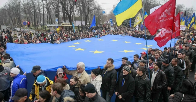 Mii de ucraineni proeuropeni s-au adunat, ieri, în centrul Kievului la o mare manifestaţie a opoziţiei, pentru a-şi exprima protestul faţă de schimbarea poziţiei Guvernului, care a decis, joi, să nu semneze acordul de asociere cu Uniunea Europeană.