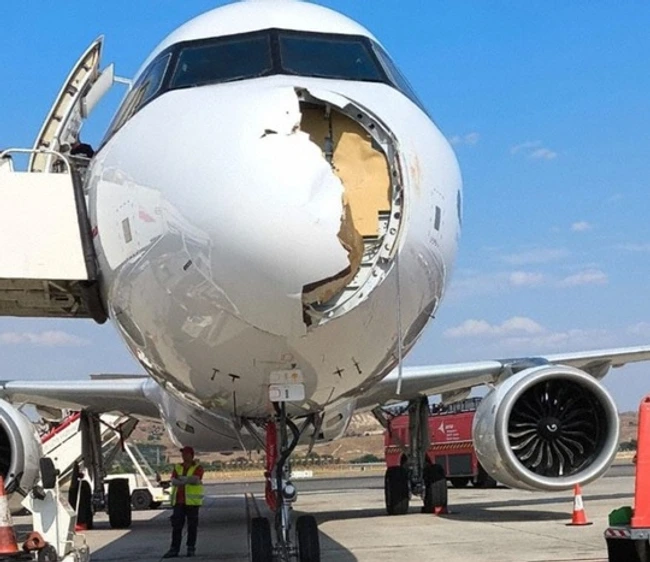 Video Un avion cu 182 de pasageri la bord, grav deteriorat după ce s-a ciocnit cu un vultur. Pilotul a aterizat de urgență
