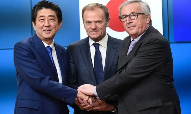 0Uniunea Europeană şi Japonia, două dintre cele mai mari puteri economice la nivel mondial, au ajuns joi la un acord politic pentru liberalizarea comerţului, semnalând-şi astfel opoziţia faţă de protecţionismul promovat de preşedintele american Donald Trump, relatează Reuters.
