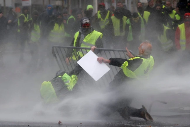 „Vestele galbene“ s-au mutat la Bruxelles. Poliţia belgiană a folosit tunuri cu apă împotriva lor