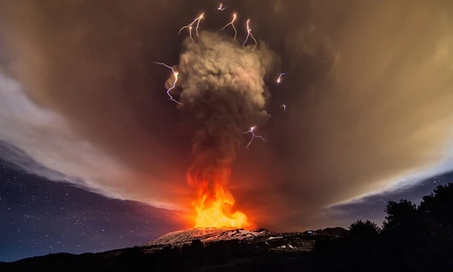 VIDEO Erupţie spectaculoasă a vulcanului Etna; cerul Siciliei, acoperit de fulgere vulcanice